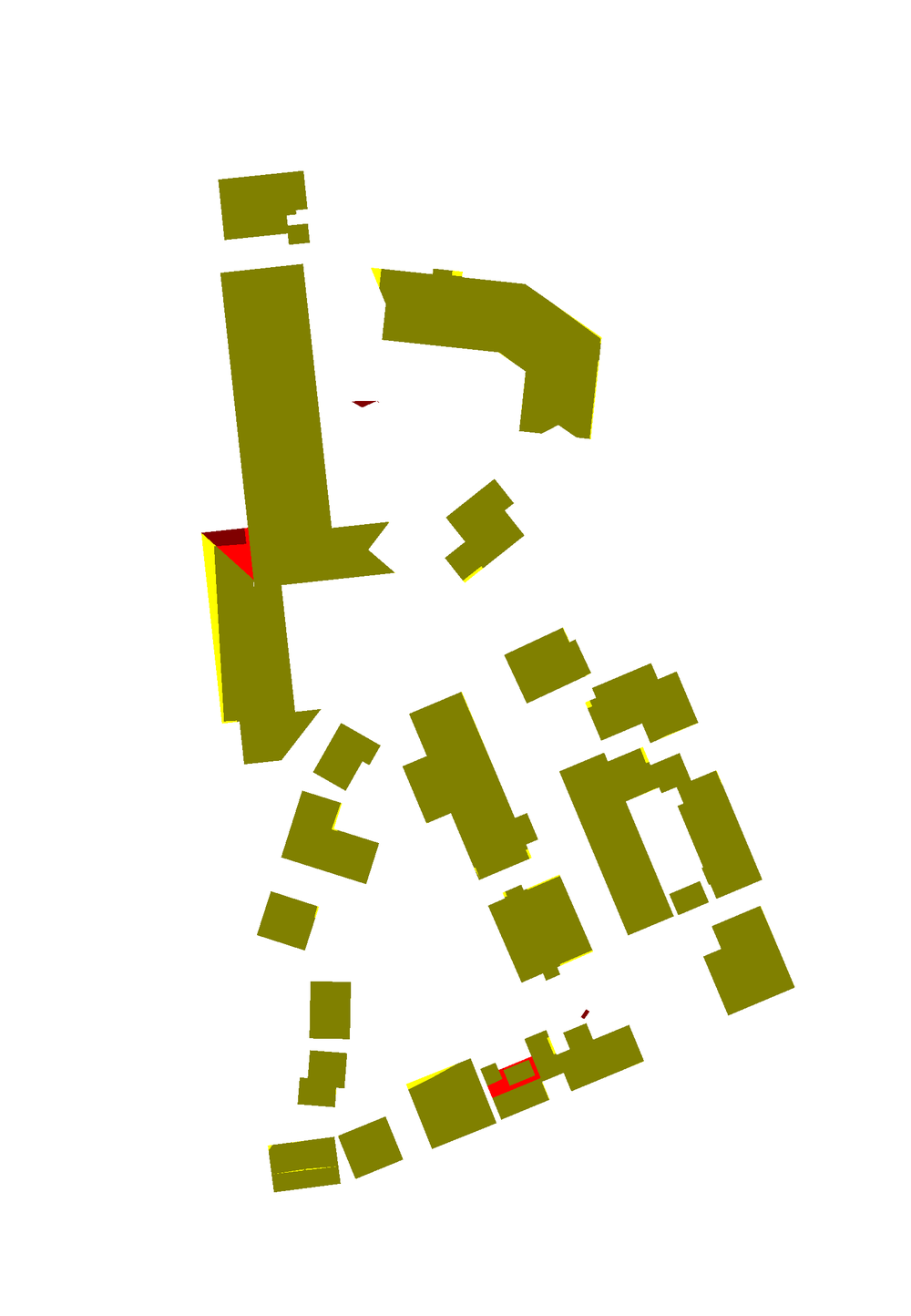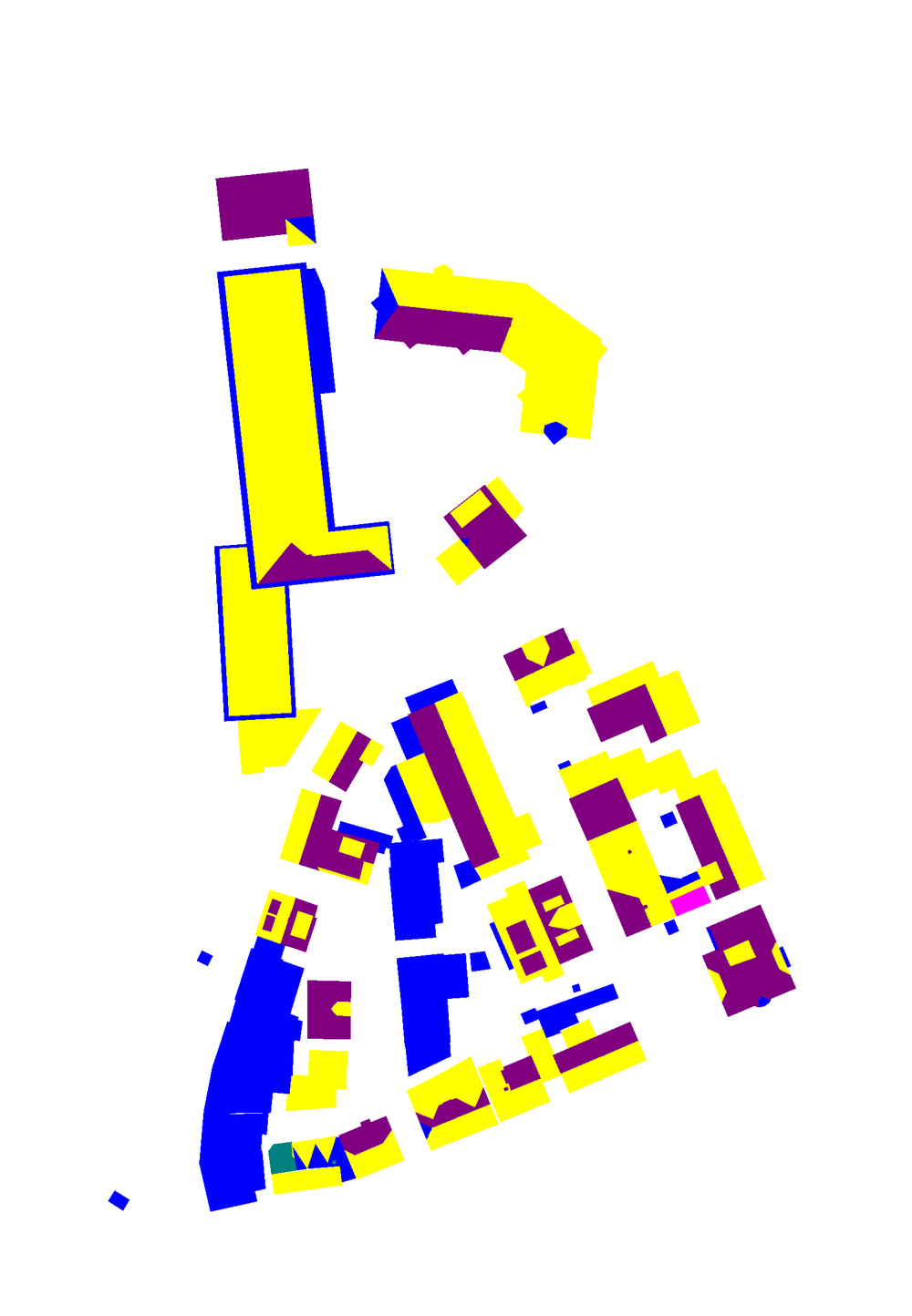 Pixels in reconstructed roof planes that correspond to several planes of the reference (1:N relation)