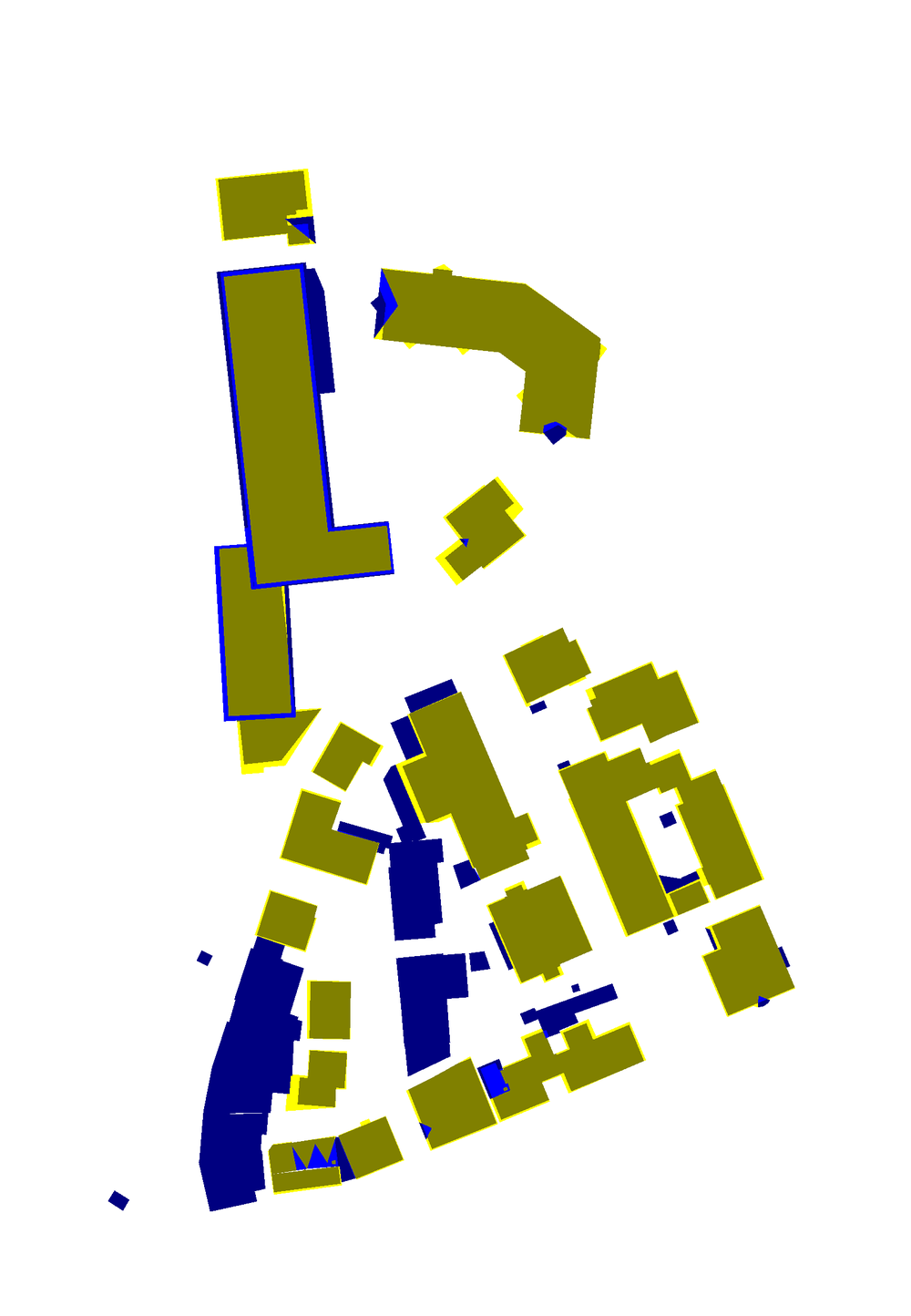 Pixels that belong to a detected roof plane found to have sufficient overlap with planes in the reference but that are not inside a building in the reference (because the extent of the detected roof plane is somewhat larger than the extent of the reference roof plane)
